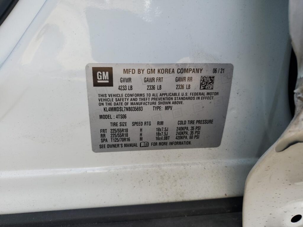 VIN: KL4MMDSL7NB035693