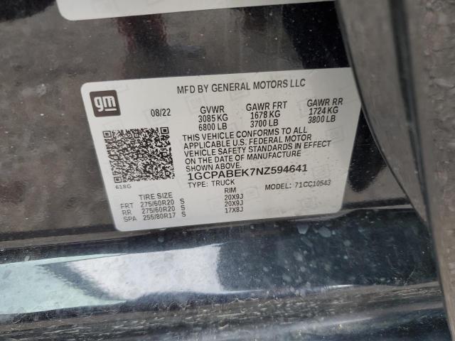 This 2022 CHEVROLET ALL Models (BLACK) comes from a major insurance auction in the USA or Canada. All information on this page is linked to the vehicle’s VIN (1GCPABEK7NZ594641), which helps confirm where the car was listed and what condition it was in at the time of sale.