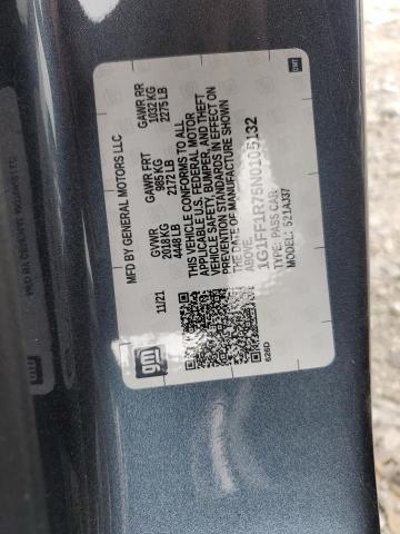 This 2022 Chevrolet Camaro Lt1 (Grey) comes from a major insurance auction in the USA or Canada. All information on this page is linked to the vehicle’s VIN (1G1FF1R75N0105132), which helps confirm where the car was listed and what condition it was in at the time of sale.