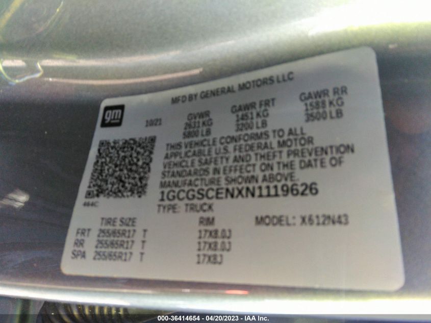 2022 Chevrolet Colorado – 1GCGSCENXN1119626