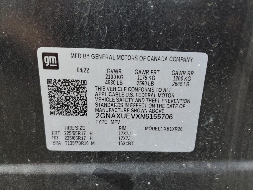 This 2022 Chevrolet Equinox (Charcoal) comes from a major insurance auction in the USA or Canada. All information on this page is linked to the vehicle’s VIN (2GNAXUEVXN6155706), which helps confirm where the car was listed and what condition it was in at the time of sale.
