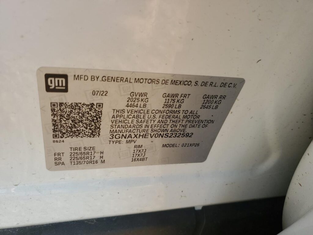 | VIN Number | 3GNAXHEV0NS232592 |