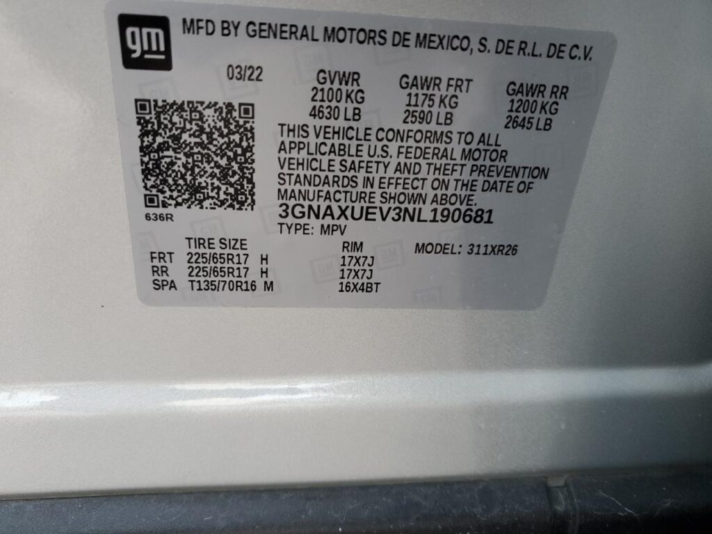| VIN Number | 3GNAXUEV3NL190681 |