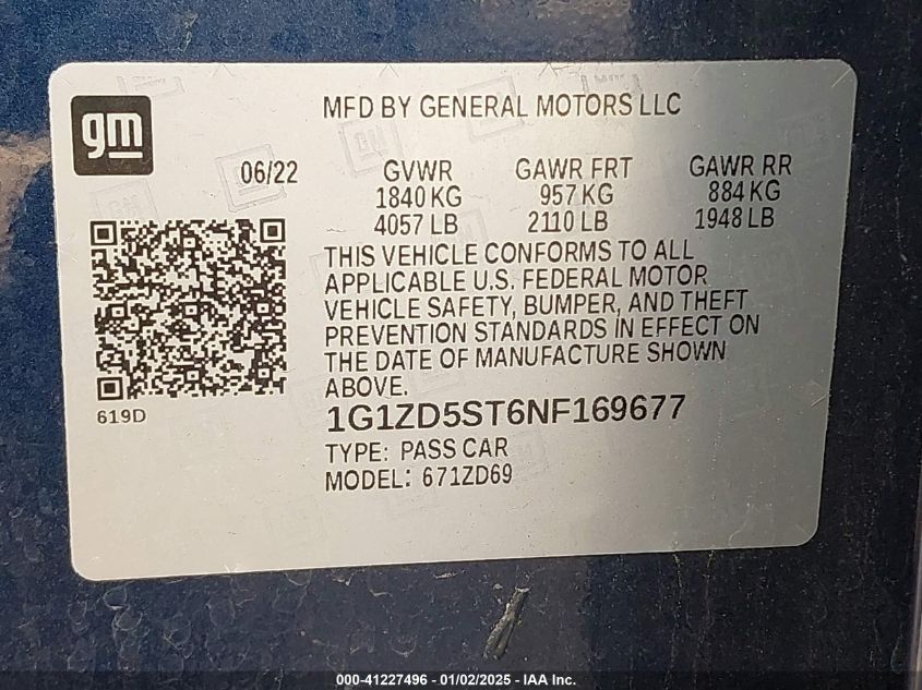 VIN: 1G1ZD5ST6NF169677