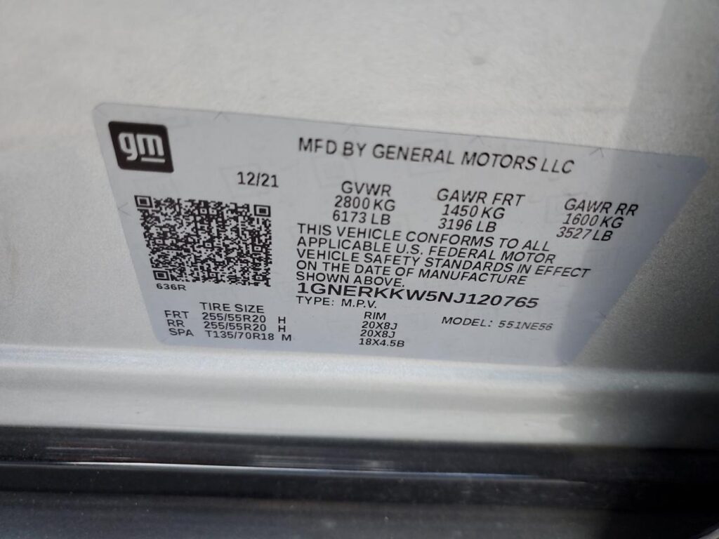 | VIN Number | 1GNERKKW5NJ120765 |