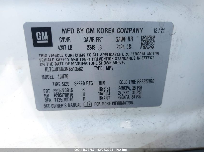 | VIN Number | KL7CJNSM3NB513582 |