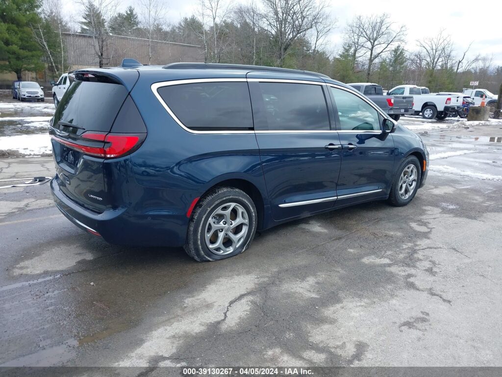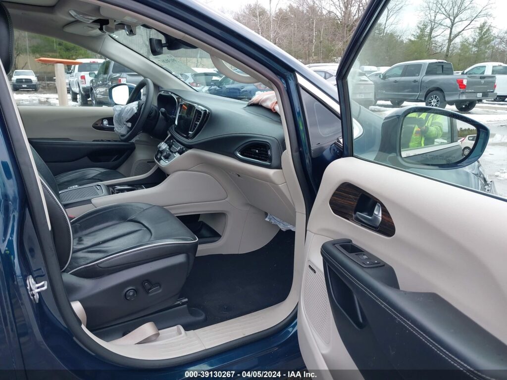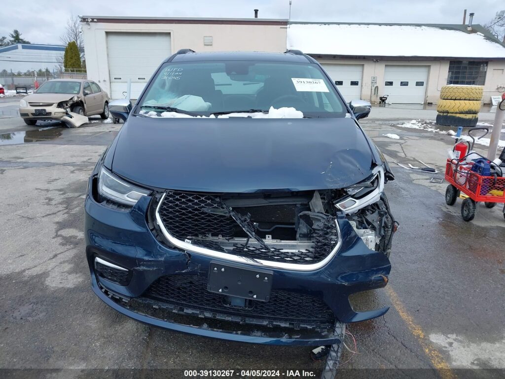 This 2022 Chrysler Pacifica (Blue) is equipped with an engine designed to balance performance and efficiency. According to the auction listing, the vehicle had 60,737 miles at the time of sale.