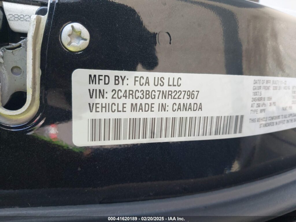 | VIN Number | 2C4RC3BG7NR227967 |