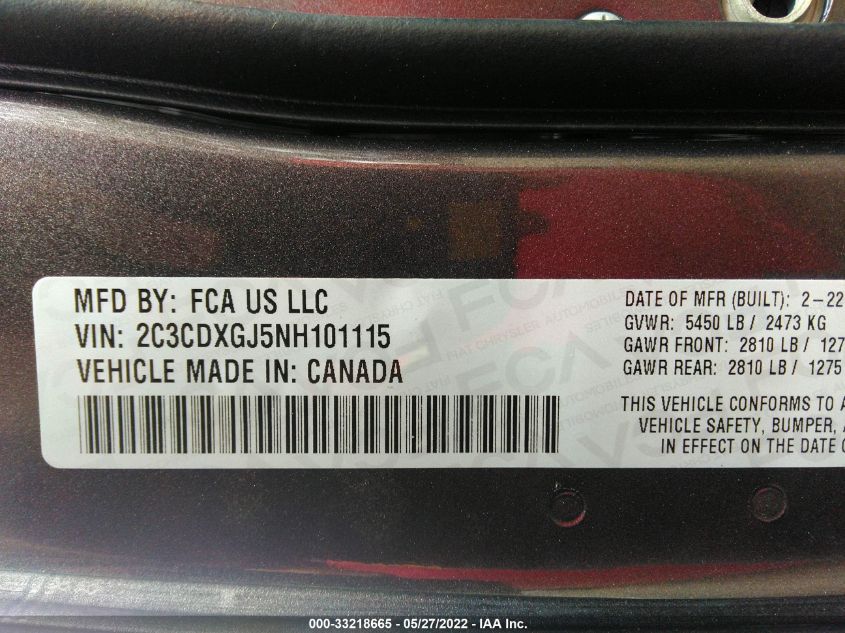 | VIN Number | 2C3CDXGJ5NH101115 |