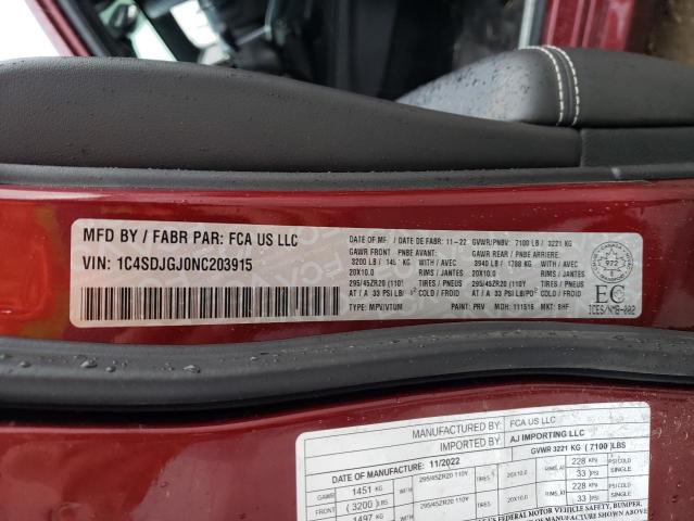 This 2022 DODGE DURANGO (RED) comes from a major insurance auction in the USA or Canada. All information on this page is linked to the vehicle’s VIN (1C4SDJGJ0NC203915), which helps confirm where the car was listed and what condition it was in at the time of sale.