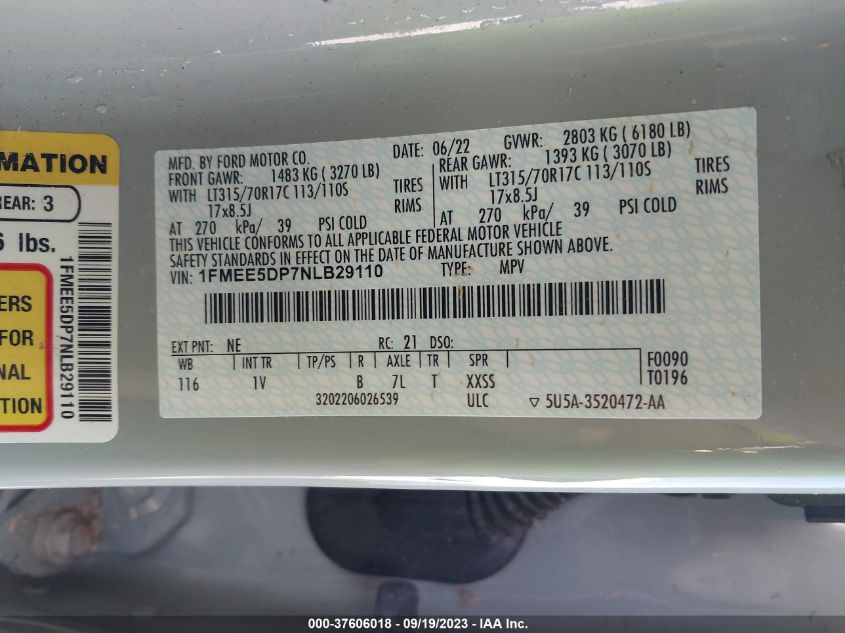 VIN: 1FMEE5DP7NLB29110