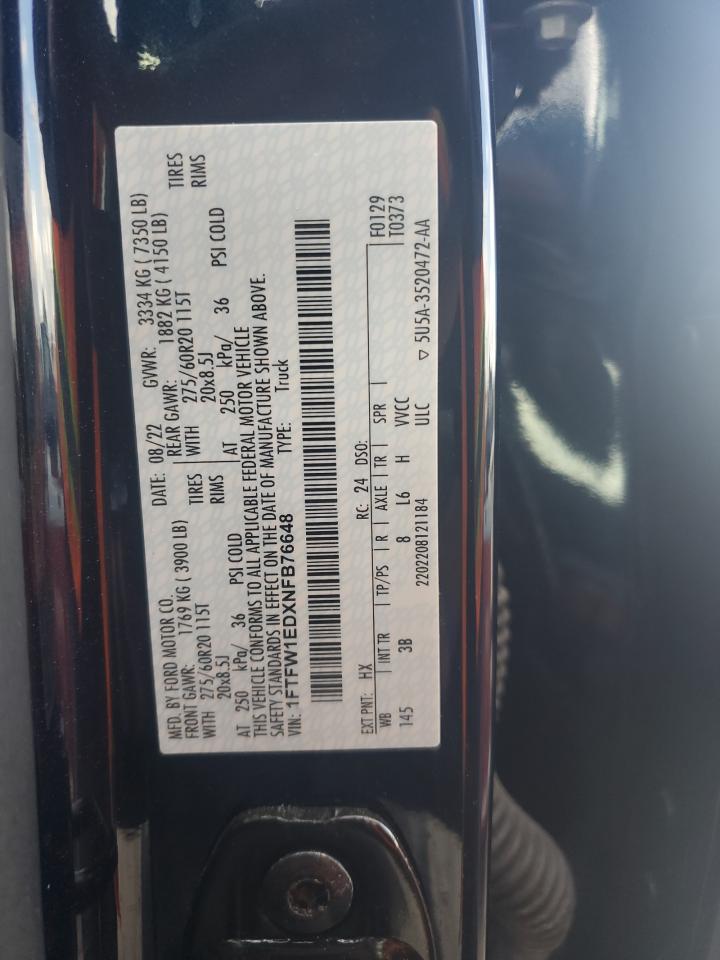 2022 FORD F-150 – 1FTFW1EDXNFB76648