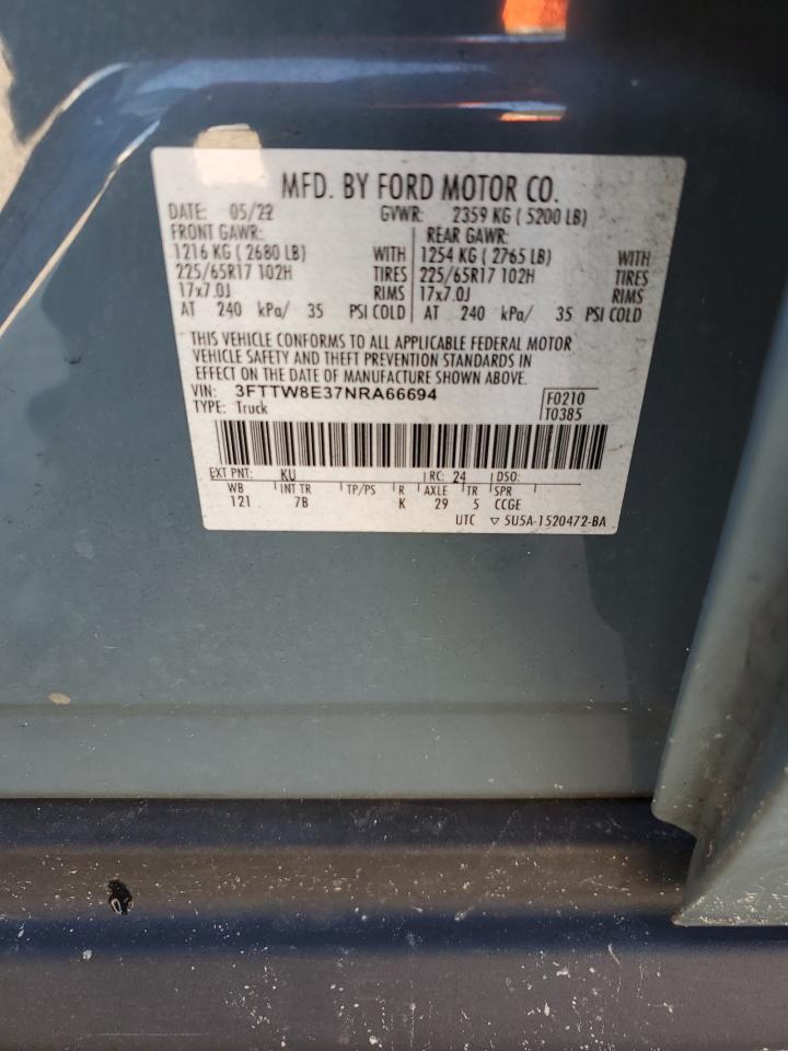 This 2022 Ford Maverick (Blue) comes from a major insurance auction in the USA or Canada. All information on this page is linked to the vehicle’s VIN (3FTTW8E37NRA66694), which helps confirm where the car was listed and what condition it was in at the time of sale.