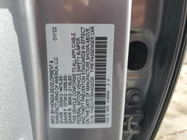 This 2022 Honda Accord (Other) comes from a major insurance auction in the USA or Canada. All information on this page is linked to the vehicle’s VIN (1HGCV1F30NA020029), which helps confirm where the car was listed and what condition it was in at the time of sale.