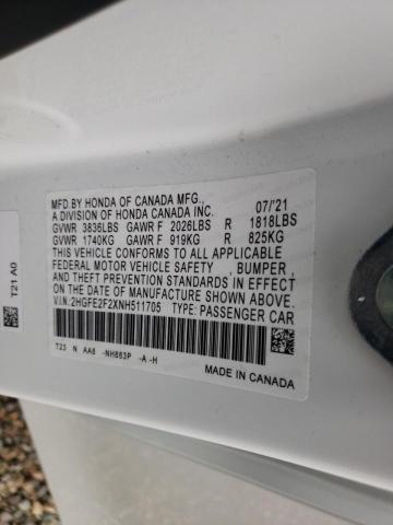 This 2022 Honda Civic (White) comes from a major insurance auction in the USA or Canada. All information on this page is linked to the vehicle’s VIN (2HGFE2F2XNH511705), which helps confirm where the car was listed and what condition it was in at the time of sale.