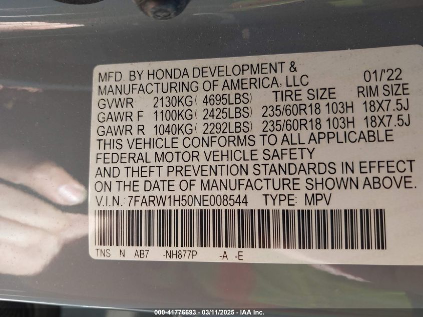 2022 HONDA CR-V – 7FARW1H50NE008544