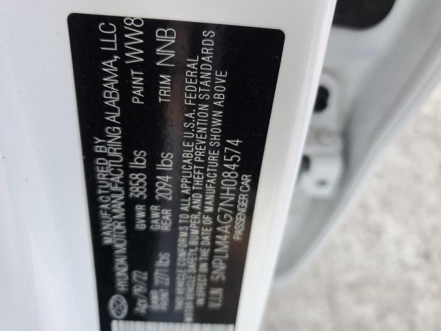 This 2022 Hyundai Elantra (White) comes from a major insurance auction in the USA or Canada. All information on this page is linked to the vehicle’s VIN (5NPLM4AG7NH084574), which helps confirm where the car was listed and what condition it was in at the time of sale.