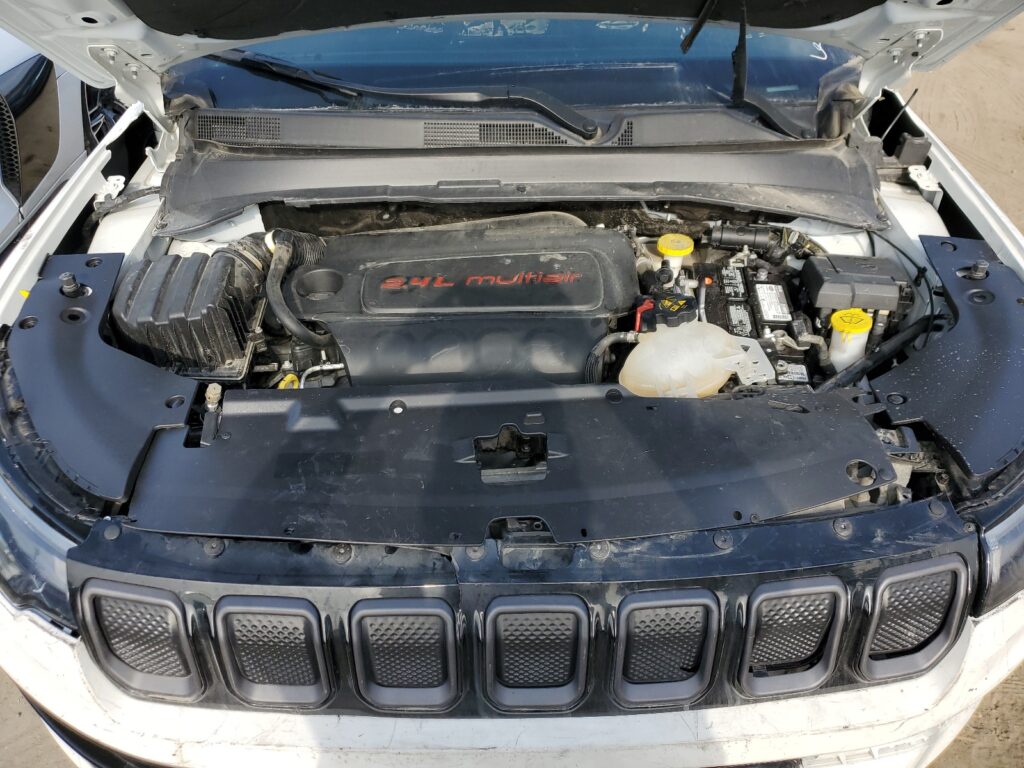 This 2022 Jeep Compass (White) is equipped with an engine designed to balance performance and efficiency. According to the auction listing, the vehicle had 24,298 miles at the time of sale.