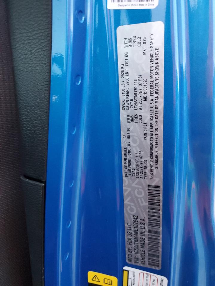 2022 JEEP GLADIATOR – 1C6JJTBM4NL107942