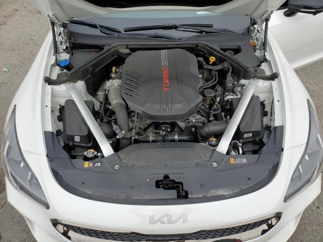 This 2022 Kia Stinger (White) is equipped with an engine designed to balance performance and efficiency. According to the auction listing, the vehicle had 46,078 miles at the time of sale.