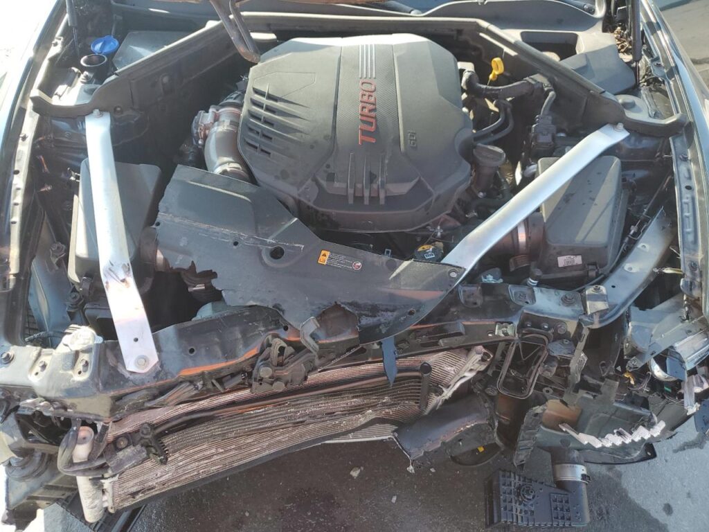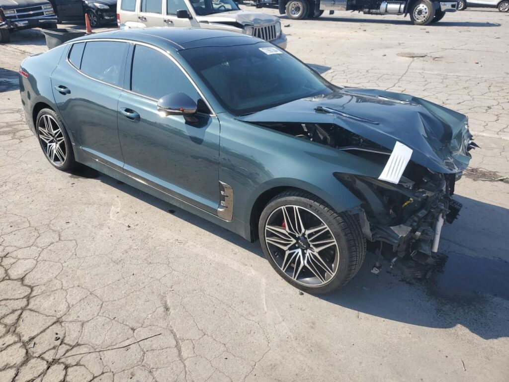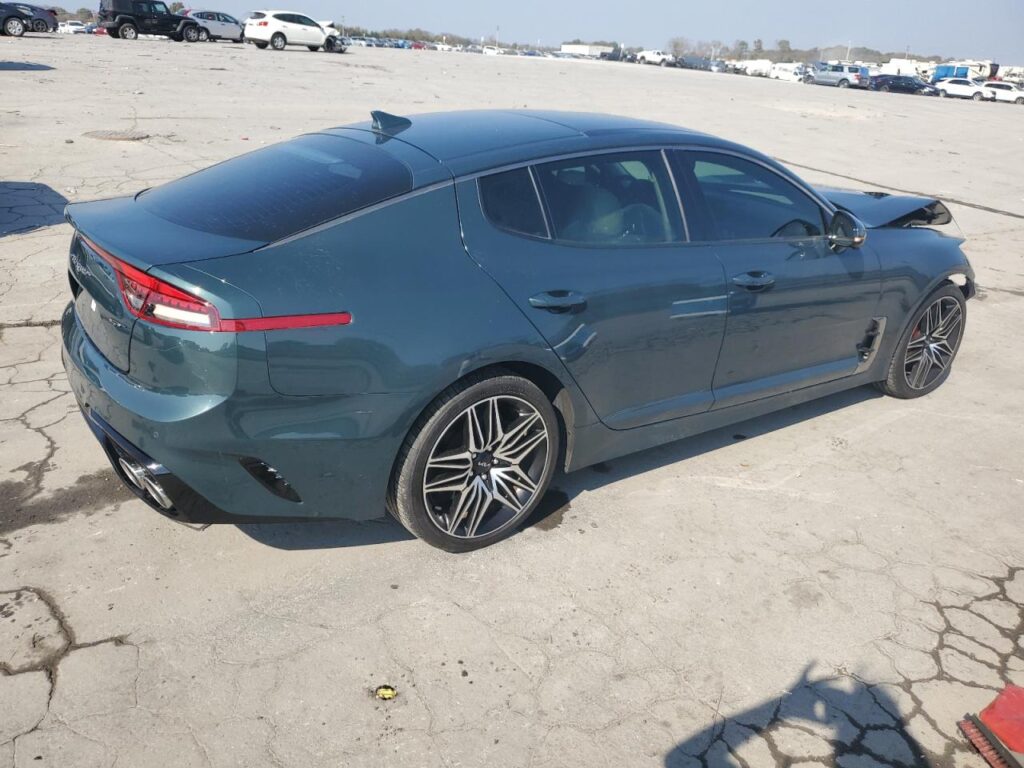 This 2022 KIA STINGER (GREEN) is equipped with an engine designed to balance performance and efficiency. According to the auction listing, the vehicle had 28,173 miles at the time of sale.
