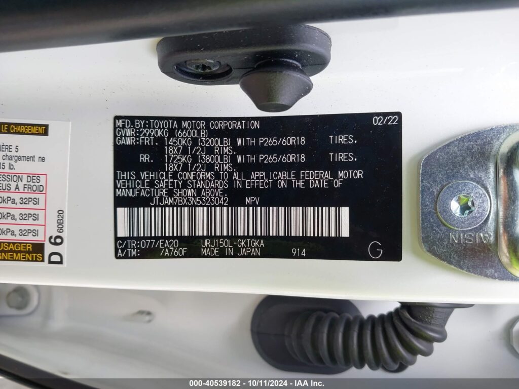This 2022 Lexus 460 (White) comes from a major insurance auction in the USA or Canada. All information on this page is linked to the vehicle’s VIN (JTJAM7BX3N5323042), which helps confirm where the car was listed and what condition it was in at the time of sale.
