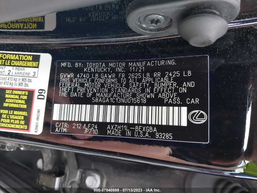 2022 Lexus ES 300h – 58AGA1C13NU015618