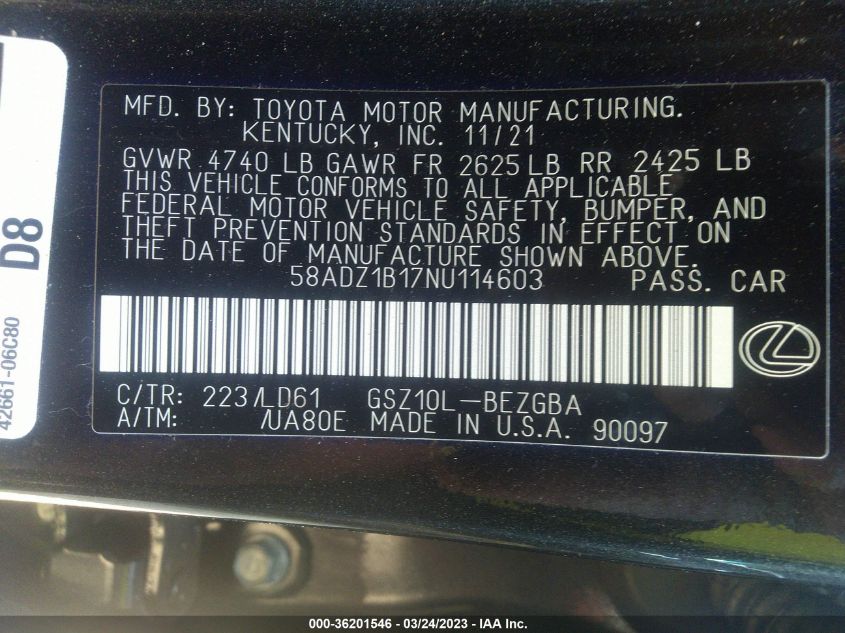 2022 Lexus ES 350 – 58ADZ1B17NU114603