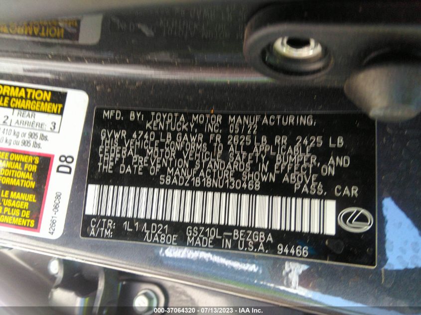 2022 Lexus ES 350 – 58ADZ1B18NU130468