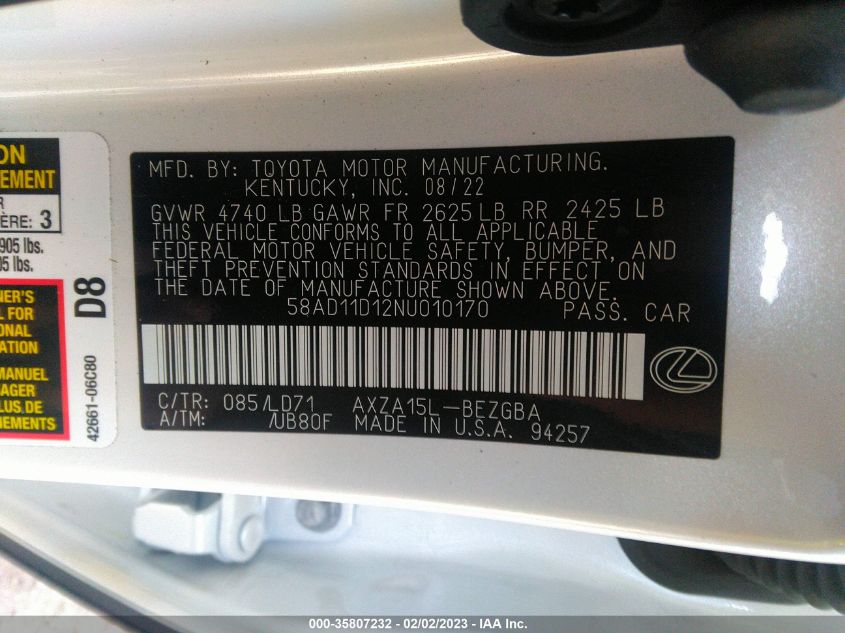 2022 LEXUS ES – 58AD11D12NU010170