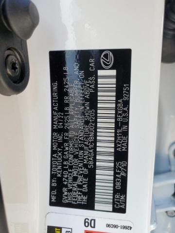This 2022 LEXUS ES300 (WHITE) comes from a major insurance auction in the USA or Canada. All information on this page is linked to the vehicle’s VIN (58AGA1C18NU021205), which helps confirm where the car was listed and what condition it was in at the time of sale.