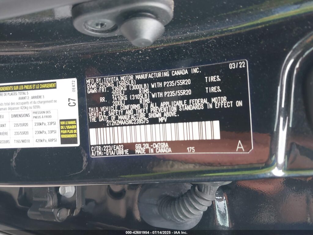 VIN Number2T2HZMAA5NC239575