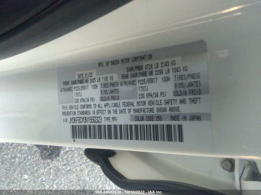 This 2022 Mazda CX-5 (White) comes from a major insurance auction in the USA or Canada. All information on this page is linked to the vehicle’s VIN (JM3KFBCM3N1569323), which helps confirm where the car was listed and what condition it was in at the time of sale.