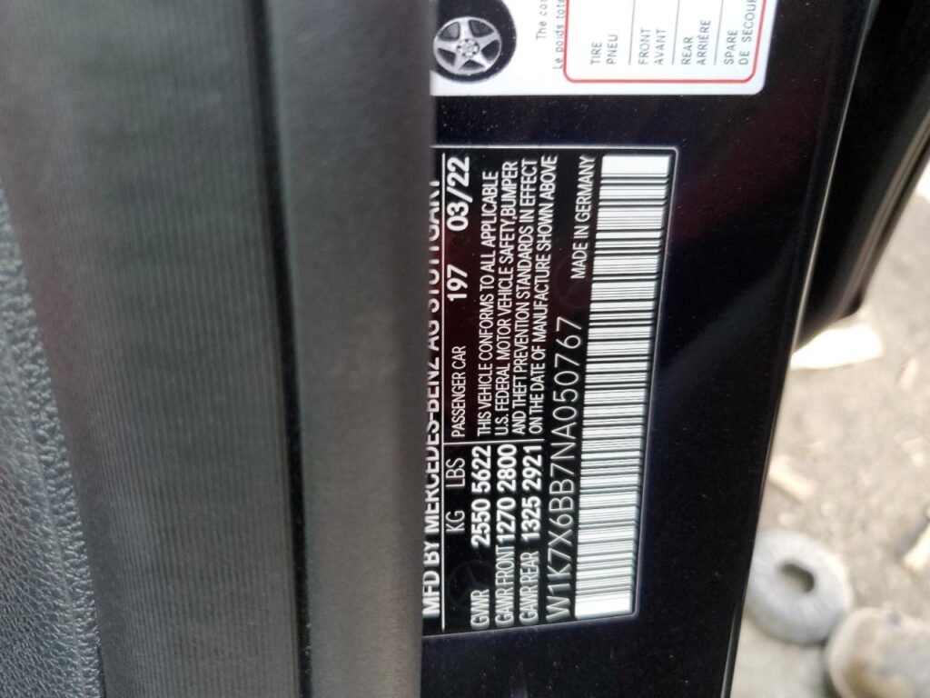 This 2022 Mercedes-Benz AMG-Class (Black) comes from a major insurance auction in the USA or Canada. All information on this page is linked to the vehicle’s VIN (W1K7X6BB7NA050767), which helps confirm where the car was listed and what condition it was in at the time of sale.