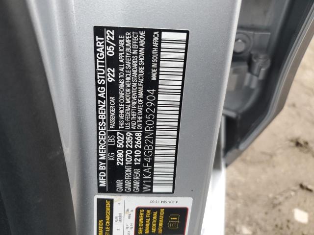 This 2022 MERCEDES-BENZ C-CLASS (SILVER) comes from a major insurance auction in the USA or Canada. All information on this page is linked to the vehicle’s VIN (W1KAF4GB2NR052904), which helps confirm where the car was listed and what condition it was in at the time of sale.
