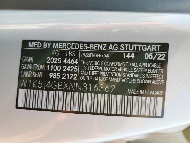 This 2022 Mercedes-Benz CLA-Class (White) comes from a major insurance auction in the USA or Canada. All information on this page is linked to the vehicle’s VIN (W1K5J4GBXNN316362), which helps confirm where the car was listed and what condition it was in at the time of sale.