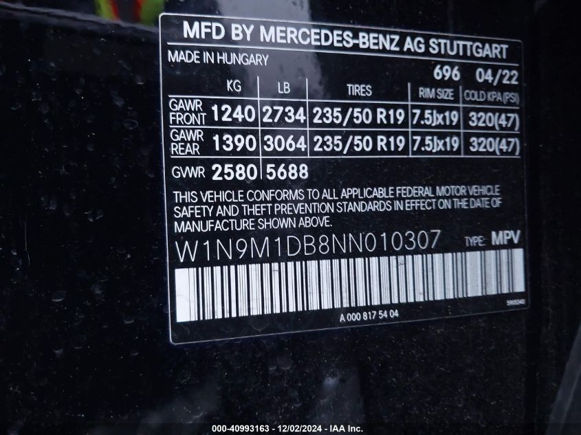 | VIN Number | W1N9M1DB8NN010307 |