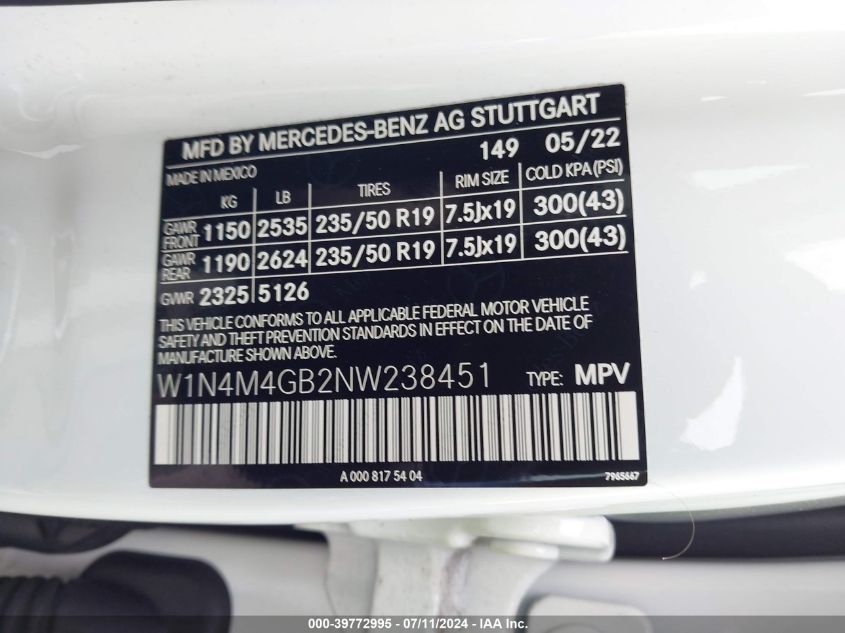 2022 MERCEDES-BENZ GLB – W1N4M4GB2NW238451