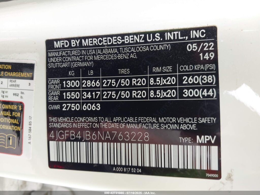 | VIN Number | 4JGFB4JB6NA763228 |