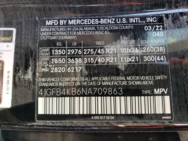 This 2022 Mercedes-Benz GLE-Class (Black) comes from a major insurance auction in the USA or Canada. All information on this page is linked to the vehicle’s VIN (4JGFB4KB6NA709863), which helps confirm where the car was listed and what condition it was in at the time of sale.