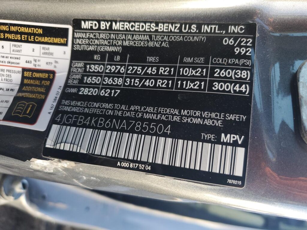 | VIN Number | 4JGFB4KB6NA785504 |