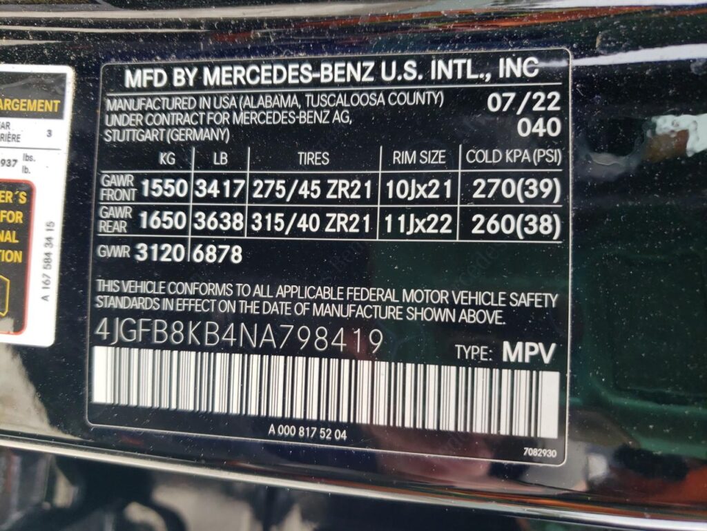 | VIN Number | 4JGFB8KB4NA798419 |