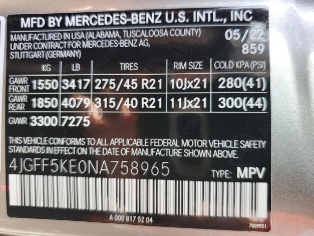 VIN: 4JGFF5KE0NA758965