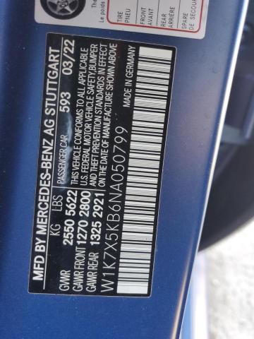 This 2022 Mercedes-Benz Gt-Class (Blue) comes from a major insurance auction in the USA or Canada. All information on this page is linked to the vehicle’s VIN (W1K7X5KB6NA050799), which helps confirm where the car was listed and what condition it was in at the time of sale.