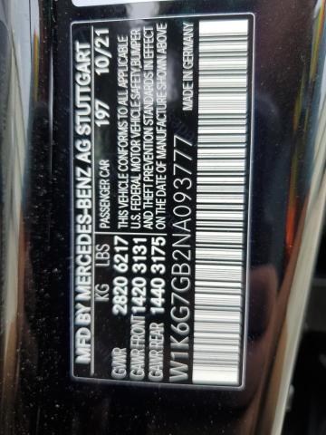 This 2022 Mercedes-Benz S-Class (Black) comes from a major insurance auction in the USA or Canada. All information on this page is linked to the vehicle’s VIN (W1K6G7GB2NA093777), which helps confirm where the car was listed and what condition it was in at the time of sale.