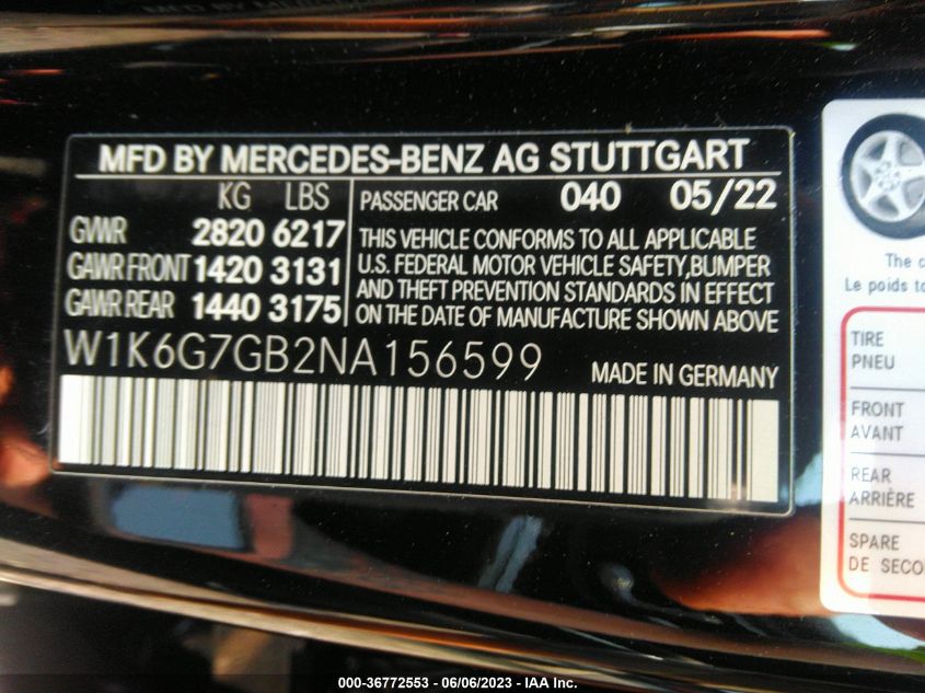 | VIN Number | W1K6G7GB2NA156599 |