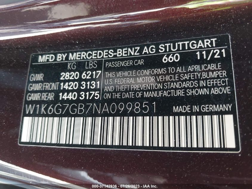 VIN: W1K6G7GB7NA099851