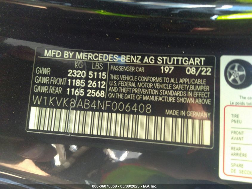 | VIN Number | W1KVK8AB4NF006408 |