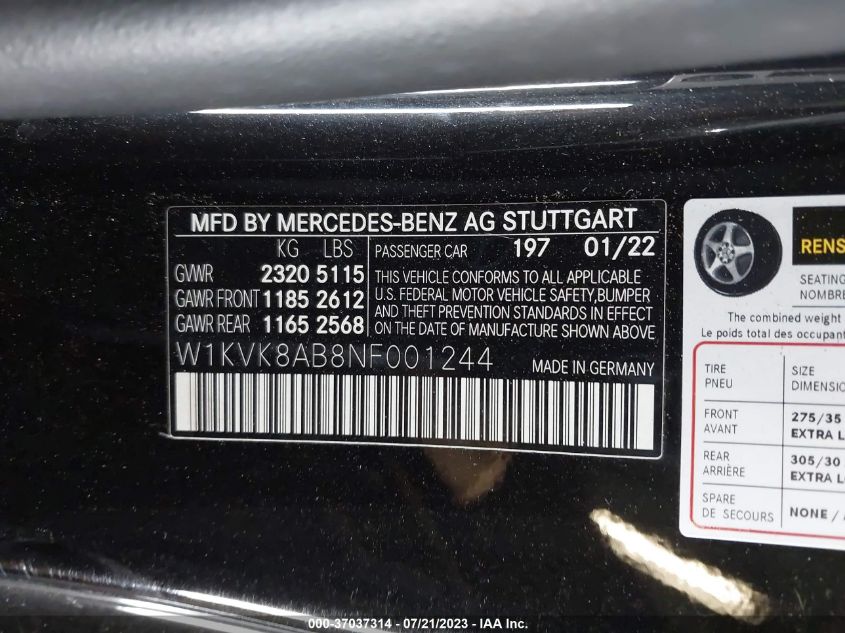 2022 Mercedes-Benz SL-Class – W1KVK8AB8NF001244