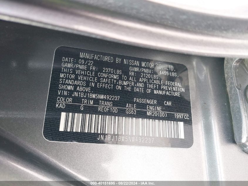 | VIN Number | JN1BJ1BW5NW492237 |